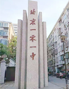 1955年,學校定名為北京一零一中,郭沫若親筆題寫校名,并釋其含義為"百尺竿頭,更進一步"。